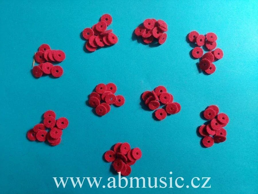 Červené malé protkané filcové podložky pod klávesy piano 90 ks.