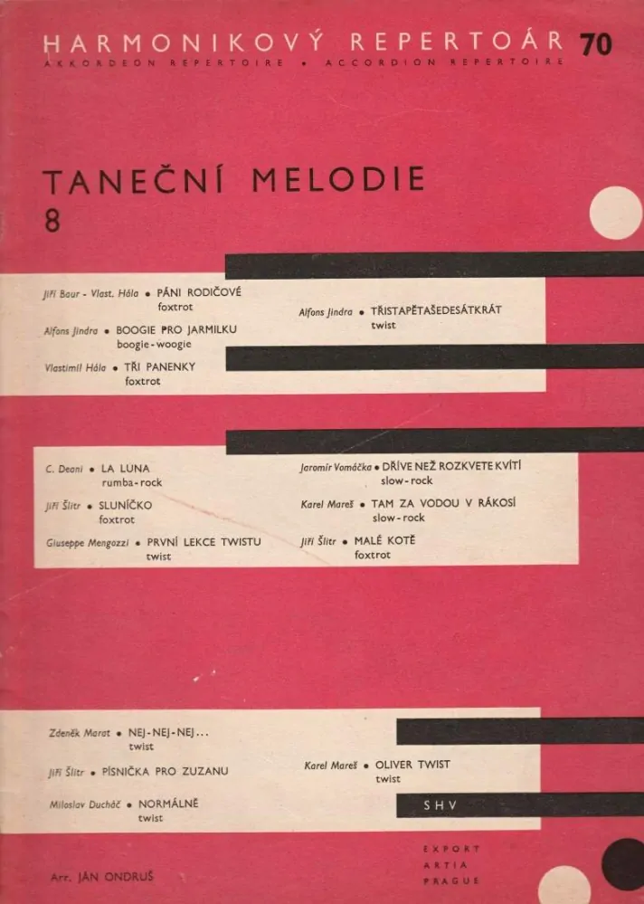 Harmonikový repertoir 70 - Taneční melodie 8 Jiří Šlitr , Zdeněk Marat , Alfons Jindra .
