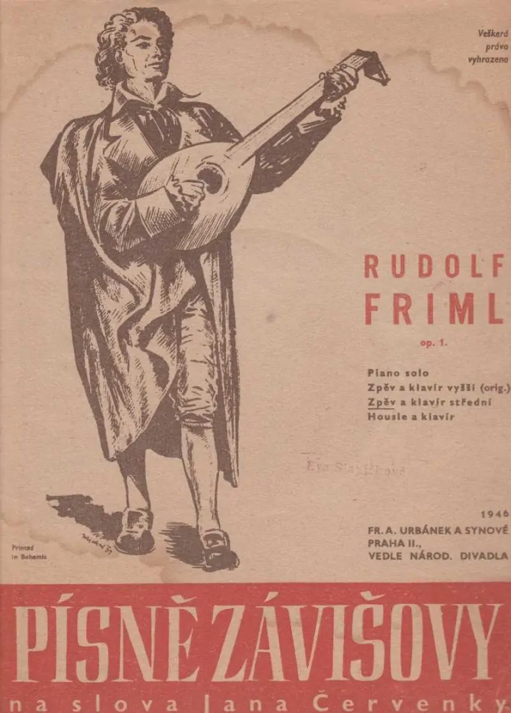 Rudolf Friml - Písně Závišovy op. 1 noty pro klavír a zpěv