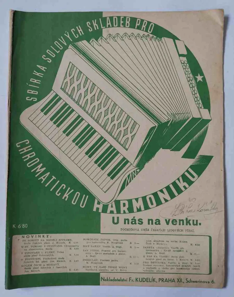 U nás venku - Noty pro akordeon - harmoniku 30Skladem40 Kč/ ks
